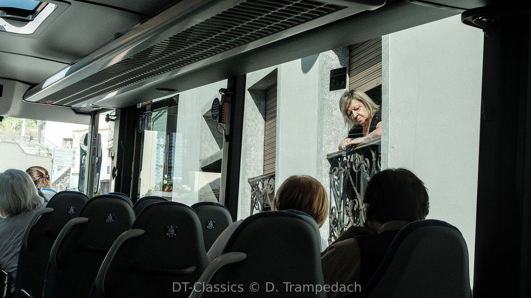 Es gibt die Gelegenheit, per Bus ins höher gelegene Macugnana zu fahren. In den Orten talaufwärts sind die Straßen so geblieben, wie sie waren. Breiter geht es dort baulich einfach nicht. Der Bus fährt daher in Handkontakt zu den Häusern. Manchmal schauen die Bewohner heraus.