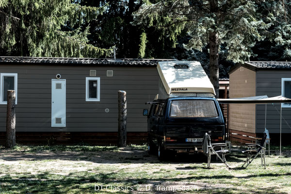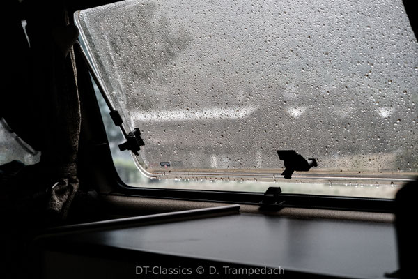 Wir haben vor allem abends diese Höhenlage registriert. Eine klamm-feuchte Luft legt sich sofort über alles, sobald die Sonne samt Wärme verschwindet. Gute Dienste leisten da im Inneren wieder einmal die bestens laufende Standheizung und außen der Iso-Balg am Klappdach. Wohlige Wärme Dank dieser beiden Dinge, und ein kühles Bier aus dem feinen Kühlschrank, machen erst so richtig aus einem einfachen Transporter einen waschechten Campingbus.