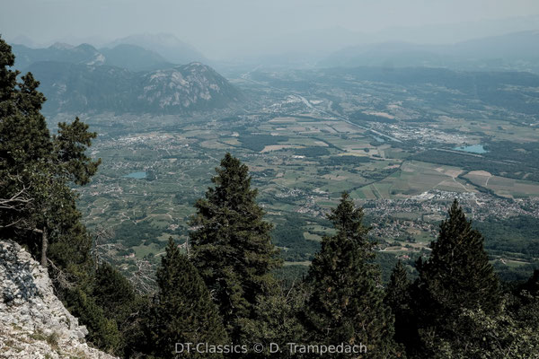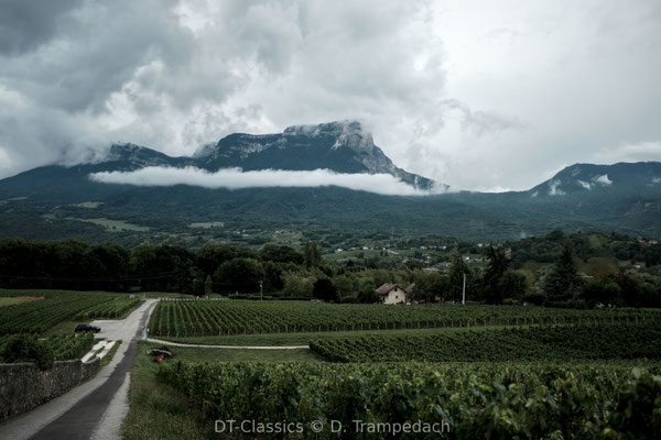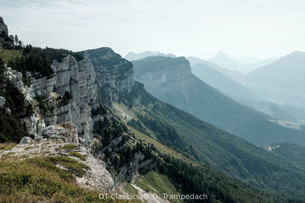 Auf der französischen Seite angekommen, wartet auf uns eine serpentinenartige, teils steile Abfahrt, die von über 1000 Meter hinab auf etwa 250 Höhenmeter führt. Eine erste Rast im Tal lässt unsere Blicke auf den Mont Granier fallen. Dieser markante Berg, der mit seiner schroffen, 900 Meter hohen Nordwand zum Chartreuse-Massiv gehört, wird Kern und Mittelpunkt unserer Zeit hier im Tal sein. Aber das wissen wir hier bei der Rast noch nicht.