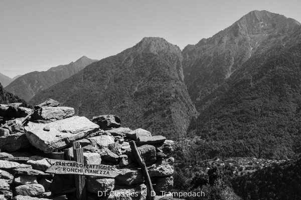 Das Anza-Tal weitet sich nach oben hin immer mehr. Wie in einer weiten Pfanne liegt Macugnana daher bestens gewählt. Einige der alten Häuser im Ortskern lassen auch heute noch keinen Zweifel daran, dass die Walser hier die Bauten errichteten. Vieles erinnert uns an Stellen, die wir in den letzten Jahren im Wallis bereist haben.