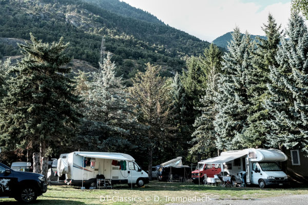 Auch am nächsten Morgen ist es noch nicht wirklich besser. Wir packen die berühmten 7 Sachen ein, und fahren weiter. Durch kleinere Orte, und immer abseits der mautpflichtigen, wie auch langweiligen Autobahnen, erreichen wir die Außenbezirke von Turin, wo wir nordwestlich dran vorbei schrammen. Dann zeigen sich erste Hinweisschilder mit der Aufschrift "Susa-Tal", und "Gran Bosco". Dort wollen wir hin. Durch den Ort Susa weiter talaufwärts, gelangen wir schließlich nach Salbertrand, und dort liegt der Campingplatz "Gran Bosco". Ziel erreicht...