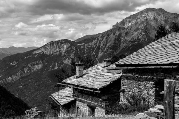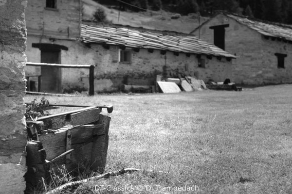 mit den alten Steinhäusern und Hochdörfern geht es mir wirklich so, dass ich sie in Monochrom sehe, denn sie sind es. Das Grün der Wiesen, das Blau des Himmels weggelassen, bleibt nichts als wunderbare Grautöne. Diese Aufnahmen sind übrigens alle nicht umgewandelt; ich belichte das unmittelbar in schwarz-weiß.