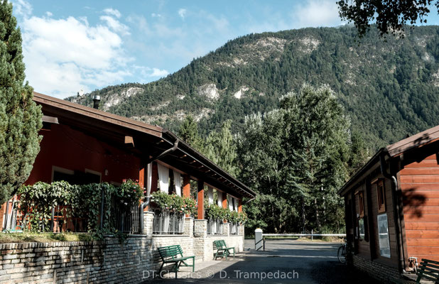 Still ist es hier am Camping Monte Rosa. Angenehm leise trifft es besser. Das war angeblich nicht immer so. Doch seit einigen Jahren baut der Betreiber den Platz von laut auf leise, von gruppengroß auf klein, und von gewöhnlich auf speziell um. Konkret heißt das, dass man dort keine riesigen Wohnmobile findet, keine Gruppen, keinen Lärm. Stattdessen gibt es eine Holzplattform für Yoga, Frühsport, oder andere Arten der geistigen & körperlichen Ertüchtigung.